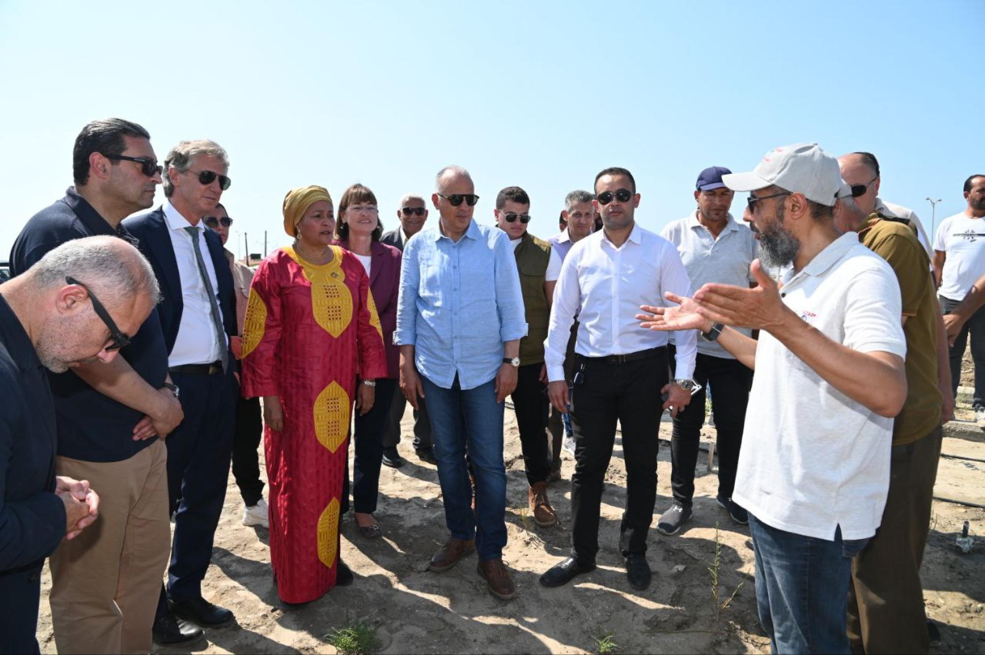 Today, Professor Dr. Hani Sweilem, Minister of Water Resources and Irrigation, and Ms. Amina Mohamed, Deputy Secretary-General of the United Nations, accompanied by Dr. Ayman El-Shehabi, Governor of Damietta, and Mr. Alessandro Fracassetti, Resident Representative of the United Nations Development Programme, visited the protection work implemented by the project in New Damietta Governorate in front of the West Damietta Power Station. They also visited the pilot project for protection coordination, which presents a landscape model that enhances the protection structure in a manner that is appropriate to the environmental and cultural dimensions of the upscale areas within the protection zone.